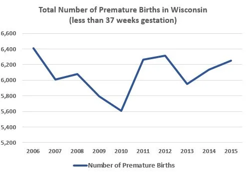 According to the Wisconsin Department of Health Services, 6,373 babies were born prematurely in 2016* - an increase of 122 over 2015. After making a significant drop in 2013, the number of premature births climbed during the next three years and is expected to increase again.